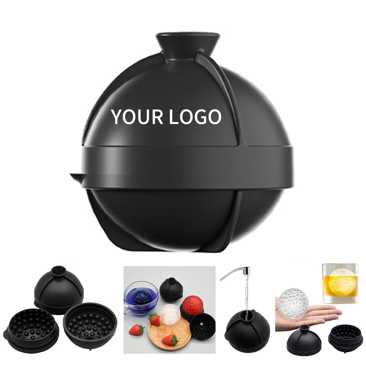 This ice mold is made of silicone, with dimensions of 2.8 inches in length, 2.8 inches in width, and 2.9 inches in height. It features a built-in funnel and non-stick surface. Used for creating golf ball-shaped ice for whiskey or cocktails. Supports silkscreen printing on the front. Contact us for more details.